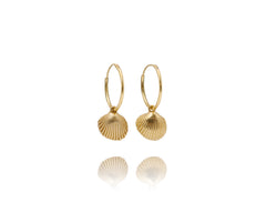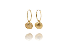 Model wearing Iris & Lolli Gold Limpet Necklace with matching Gold Limpet Earrings and Gold Whelk Shell Charm Bracelet handcrafted from recycled silver with 18ct gold vermeil finish