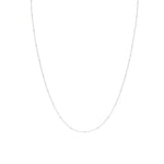 Two delicate silver chain necklaces, trace and satellite styles, shown side by side on a neutral background, perfect interchangeable chains for pendants.