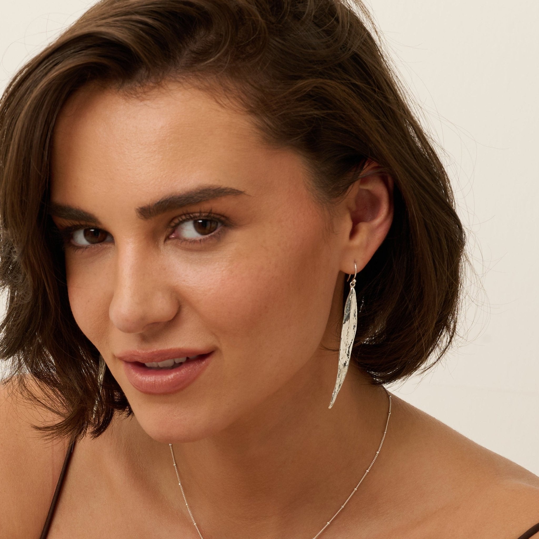 These Silver Willow Leaf Earrings are handcrafted from recycled sterling silver, formed to mirror the long, tapering silhouette of a willow leaf. Their organic texture and soft sheen catch the light with every movement, a quiet nod to nature’s balance of strength and flow.