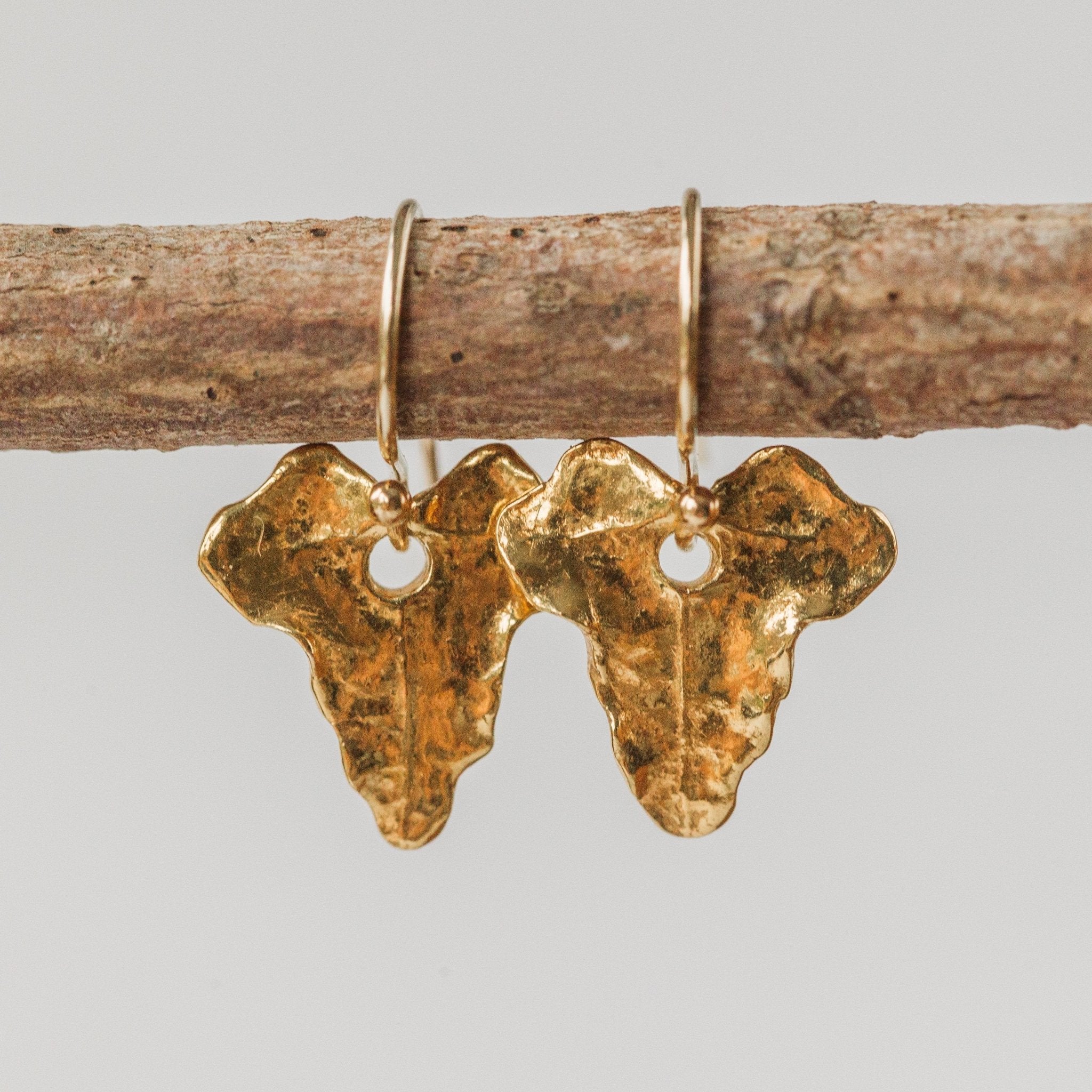 This cute set Baby Ivy Leaf Earrings & necklace are sculpted from a real leaf in recycled silver & then coated in a layer of luxurious 18ct gold.