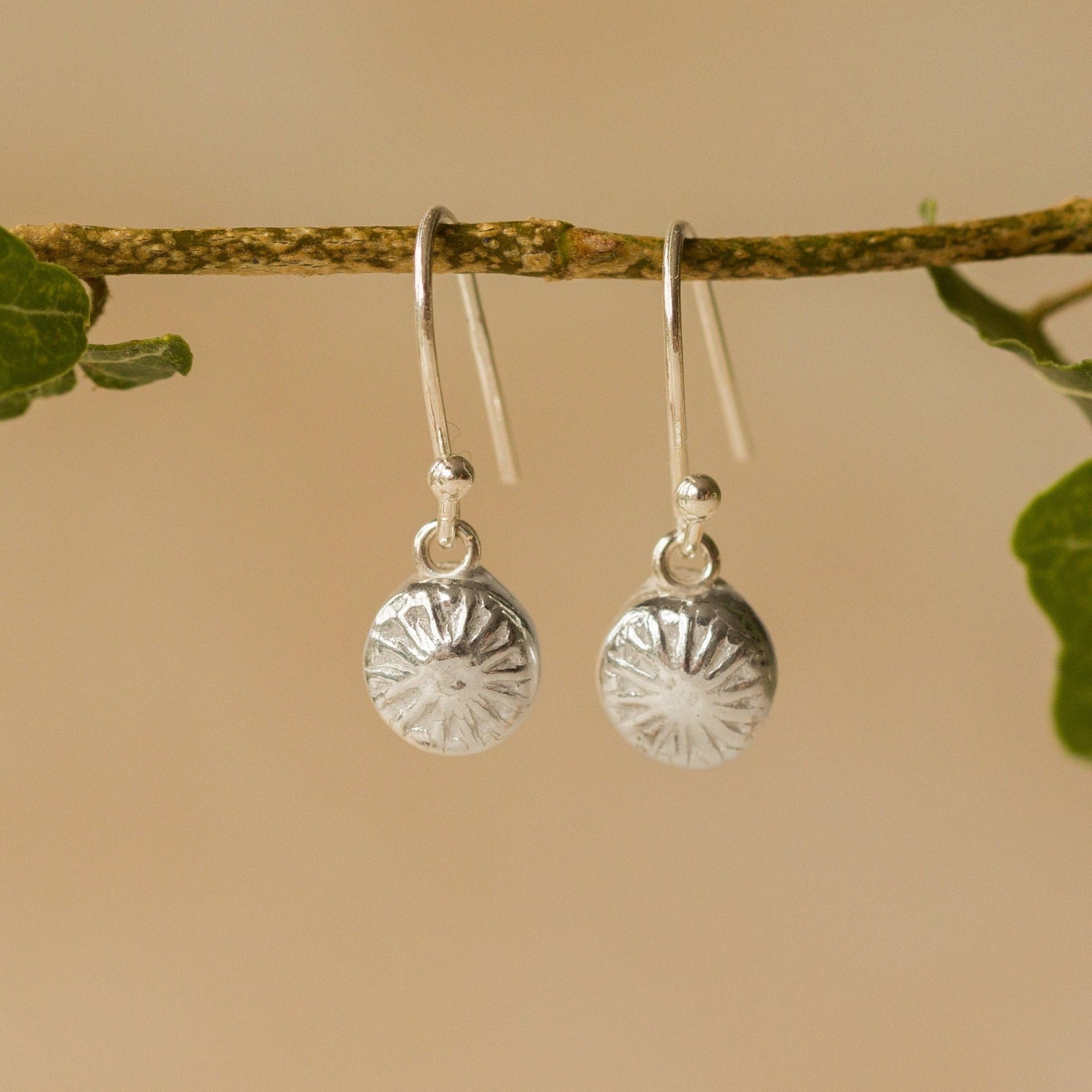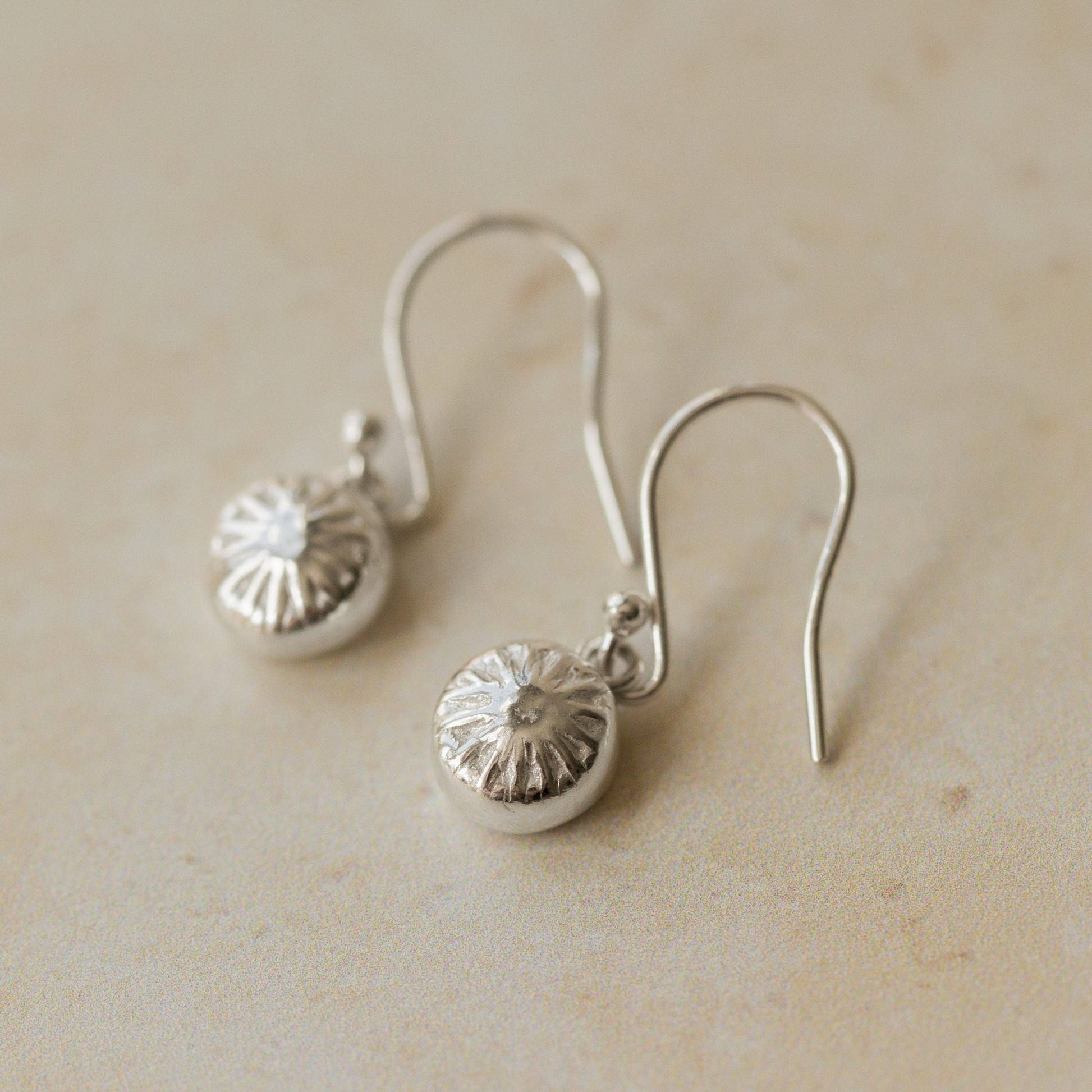 These Silver Corn Poppy Crown Earrings are handcrafted from recycled silver, cast from the top of real corn poppy seed heads to preserve their distinctive ridged crown and natural detail. With their soft sheen and sculptural form, they’re a celebration of nature in miniature.