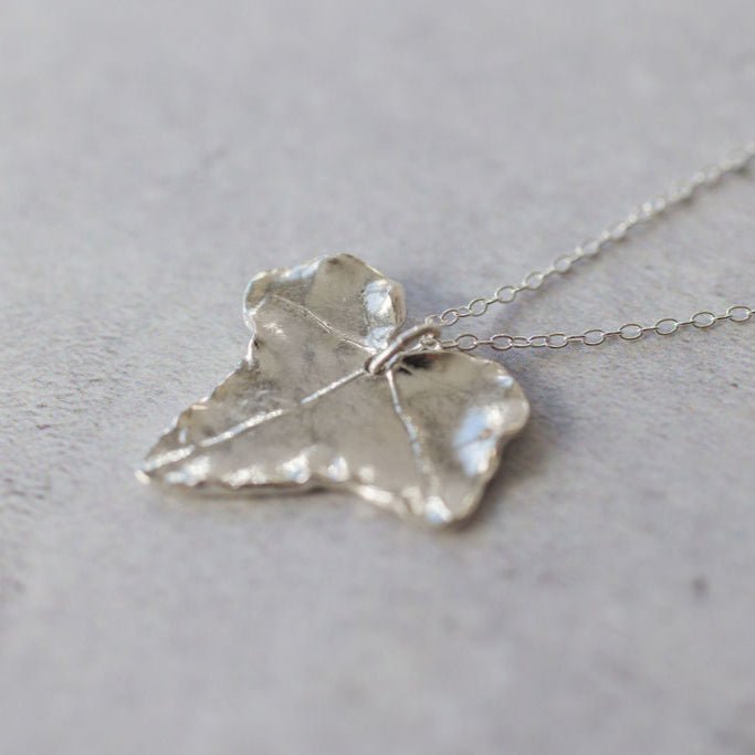 Graceful and enduring, this Silver Statement Ivy Leaf Necklace is handcrafted in recycled silver using a casting taken from a real ivy leaf. Its soft sheen and natural contours catch the light beautifully, bringing a touch of woodland calm to everyday wear.