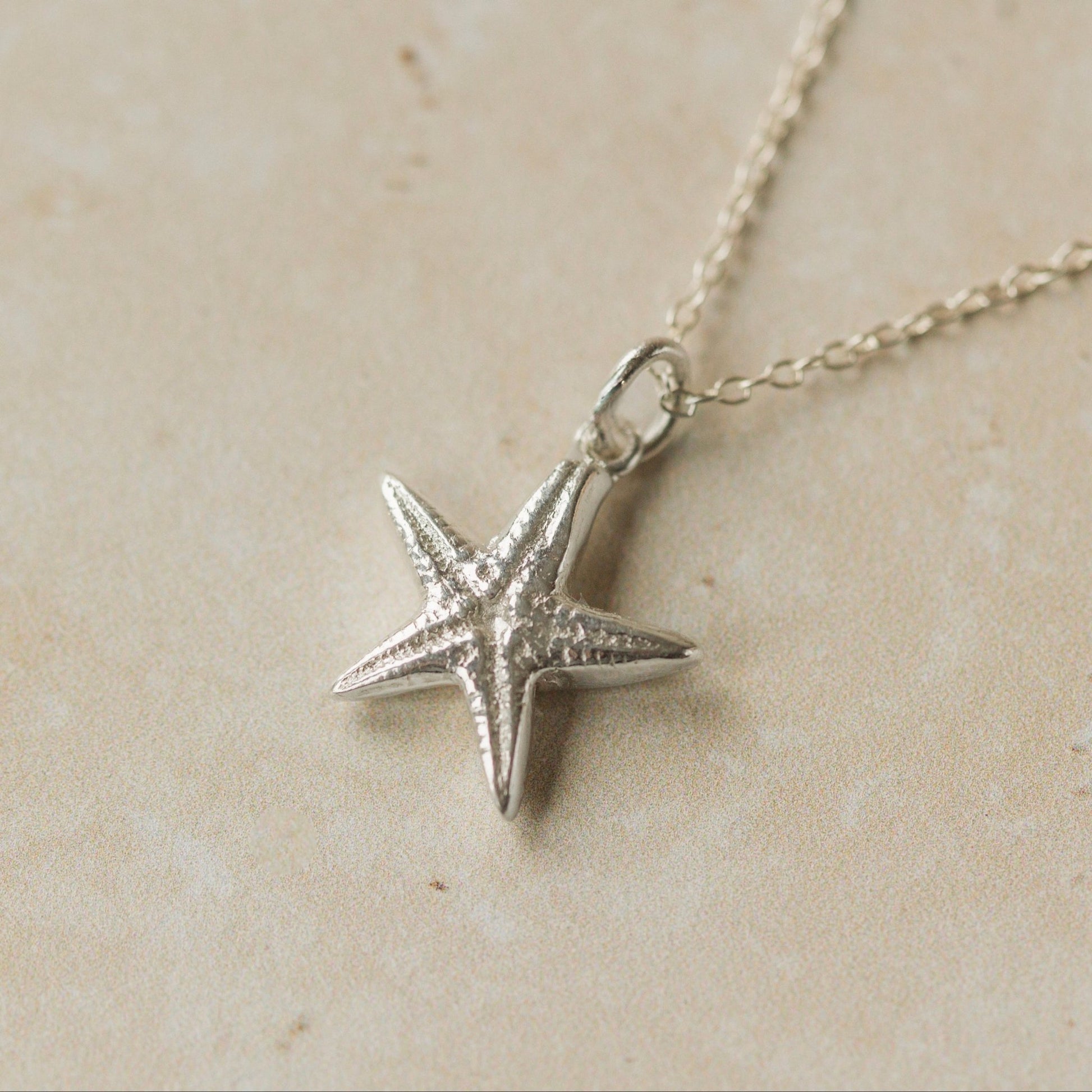 This beautifully silver starfish necklace is crafted by hand from a real Starfish using ‘999’ fine silver.